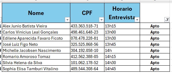 - O candidato que não comparecer à entrevista será excluído do processo seletivo simplificado, não podendo ser alegada qualquer espécie de desconhecimento, seja qual for o motivo.